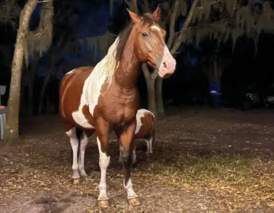 Bullseye is a striking American Paint gelding who wins hearts not just with his flashy looks, but with his gentle and friendly demeanor. He came to our farm after a divorce and was re-homed to us from a nearby farm. While he usually carries taller or bigger riders, Bullseye is suitable for riders of all levels. He also loves the spotlight, making him perfect for photoshoots and movie productions.