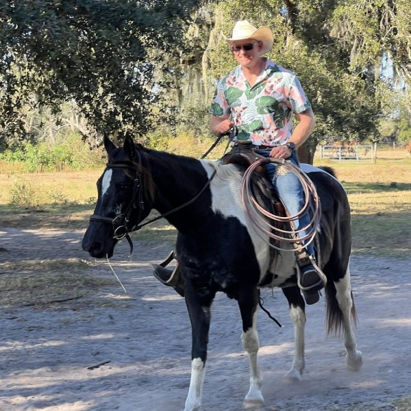 Rain is our Tennessee Walker mare with a heart of gold. I rescued her after seeing an urgent re-homing ad on Craigslist in Arcadia. She is a wonderful mother to our Akhal-Teke/Tennessee Walker cross, Sunrise. While Rain is best suited for more experienced riders, she can also be enjoyed by beginners who are comfortable with her naturally faster gait.